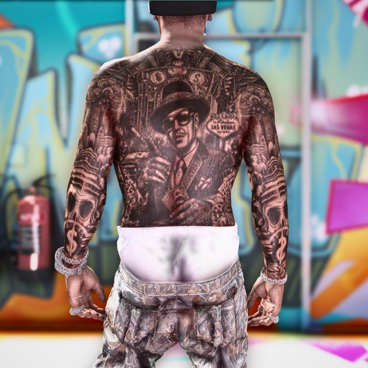 Bring Sin City energy to your FiveM server with this Las Vegas-inspired tattoo mod for male characters. Featuring designs that blend casino icons, neon lights, gang culture, and street life, this mod gives your character a bold backstory rooted in the city that never sleeps.
