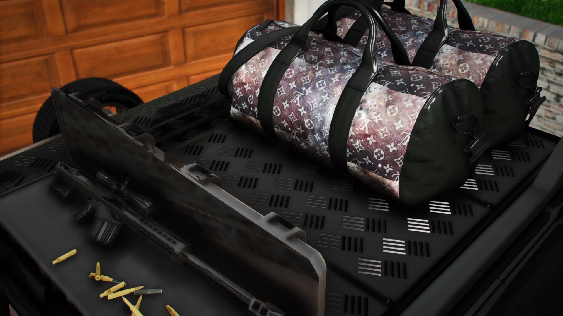 Mafia Props Ready: Includes loaded duffle bags, stacks of money, and visible weapons for that underworld aesthetic.